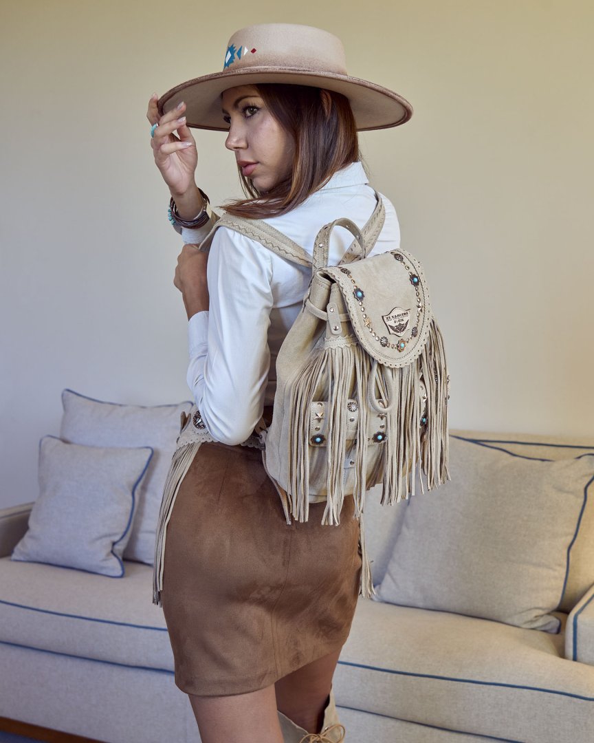 Il nostro iconico zaino torna in una versione borchiata ancora più grintosa: Alba. Realizzato a mano in Toscana, con borchie applicate singolarmente, è un accessorio che unisce carattere e funzionalità. Frange lunghe, taschini esterni, tasca interna con zip, dettagli metallici e chiusura magnetica lo rendono pratico e irresistibile. Rifinito con il celebre lavaggio Silverstone, che esalta ogni sfumatura della pelle e rende ogni pezzo unico e irripetibile.