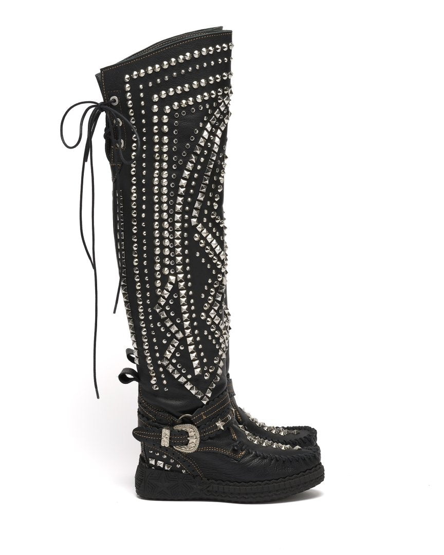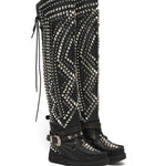 Un modello inedito, mai visto prima. Extreme rappresenta l’essenza più audace di El Vaquero: quasi duemila borchie applicate a mano rivestono l’intero gambale, creando un gioco di luce e riflessi che contrasta con la pelle nera di altissima qualità. Ogni dettaglio racconta ore di lavoro artigianale e passione toscana. Una creazione esclusiva, realizzata in edizione limitata, per chi vuole indossare uno stivale unico, dal carattere deciso e irripetibile.