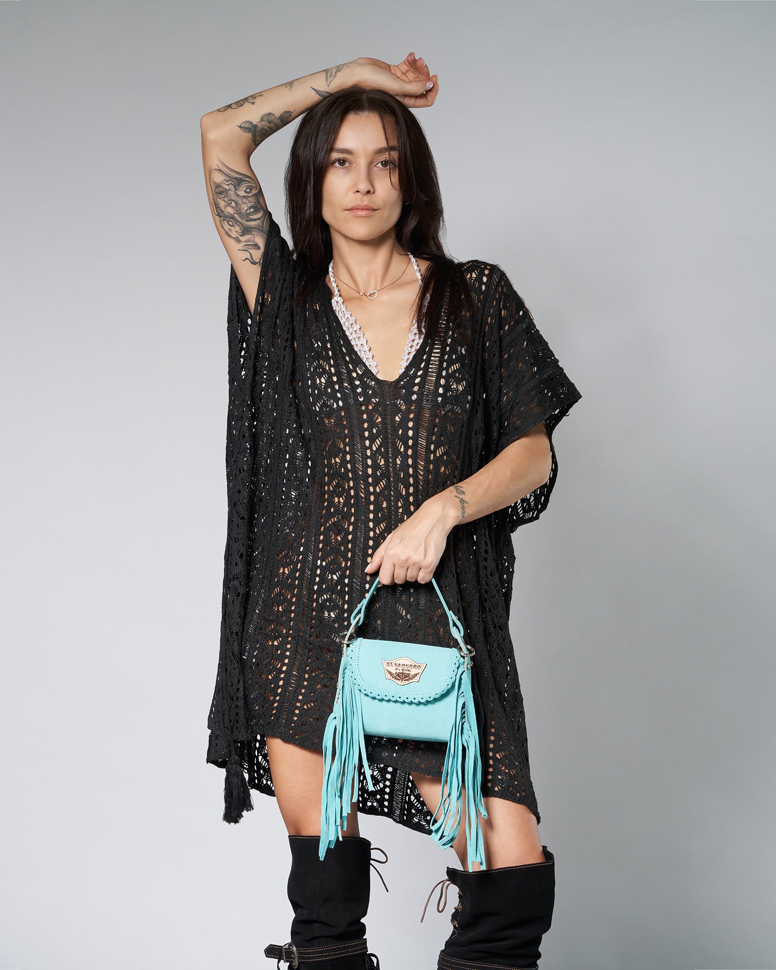 La combinazione di materiali pregiati e l'abilità artigiana si fondono in un capolavoro di design; la nuova borsa Daria firmata El Vaquero è pronta a conquistare il mercato. Caratterizzata da morbide frange laterali e impreziosita da elementi metallici, la borsa Daria può essere portata sia a mano che a tracolla. Rifinito con il celebre lavaggio Silverstone, pietra miliare del marchio El Vaquero, che esalta ogni sfumatura della pelle nei suoi colori più intensi e rende ogni stivale diverso e unico nel suo genere.