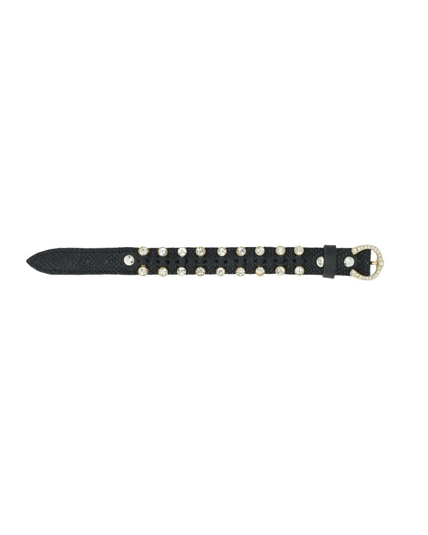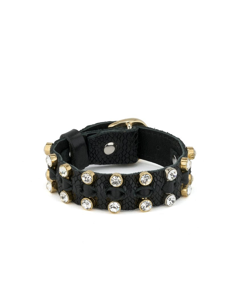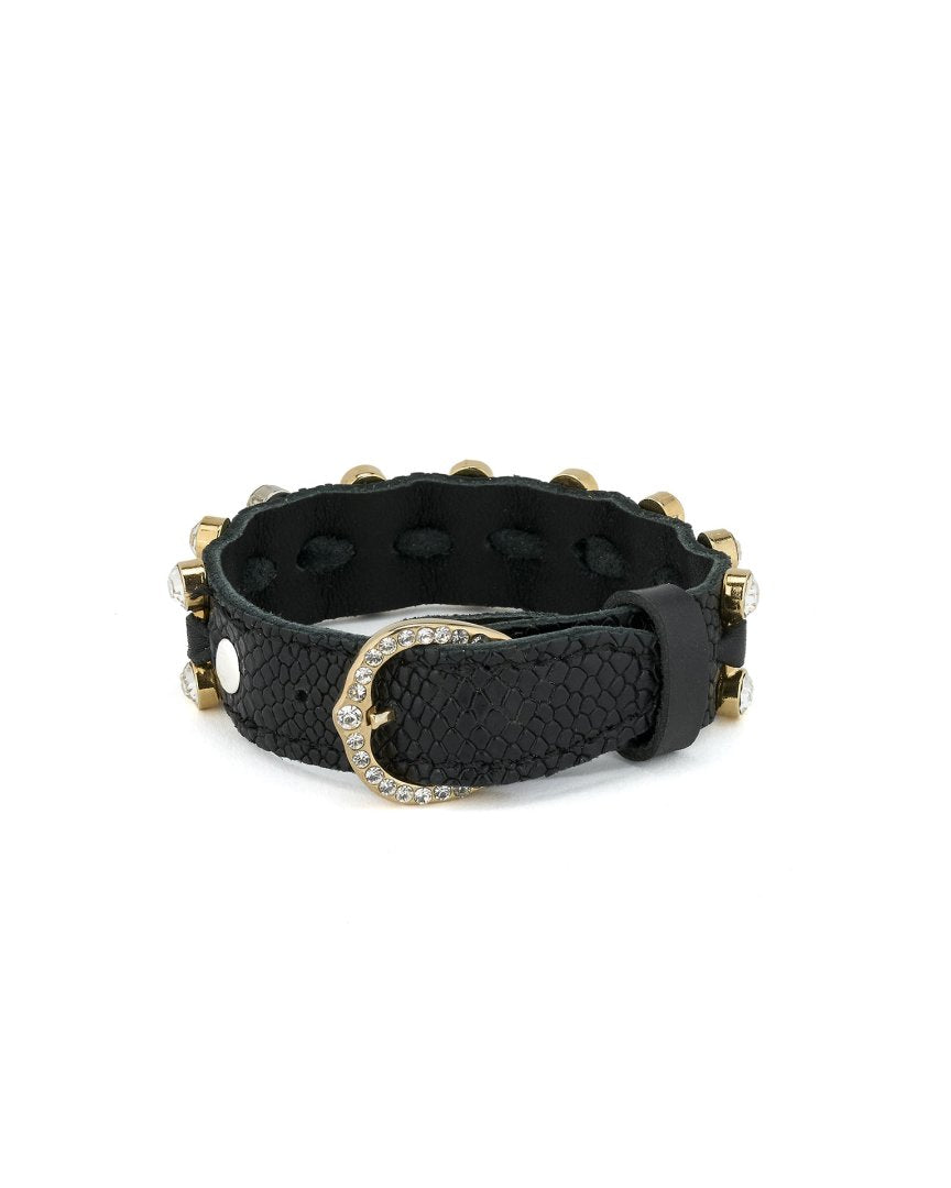 Bracciale In Cuoio Con Strass Aura Lizard-print Black