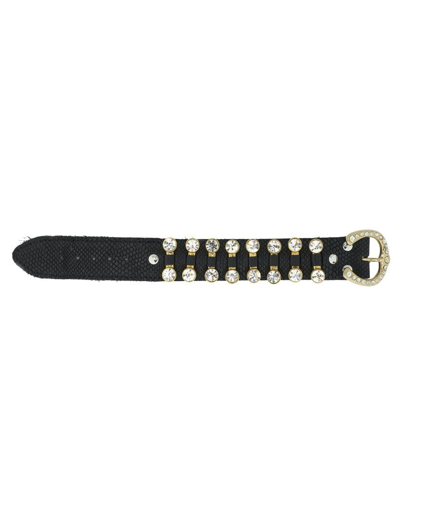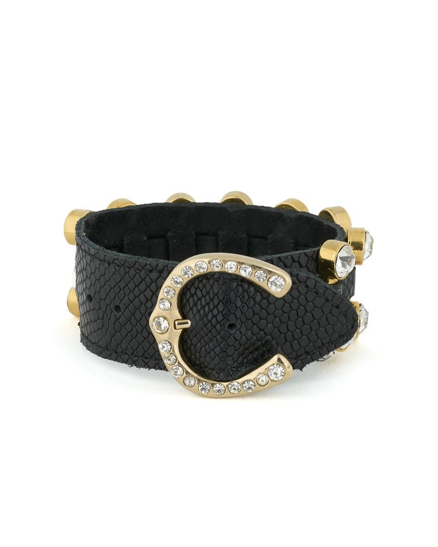 Bracciale In Cuoio Con Strass Lux Lizard-print Black