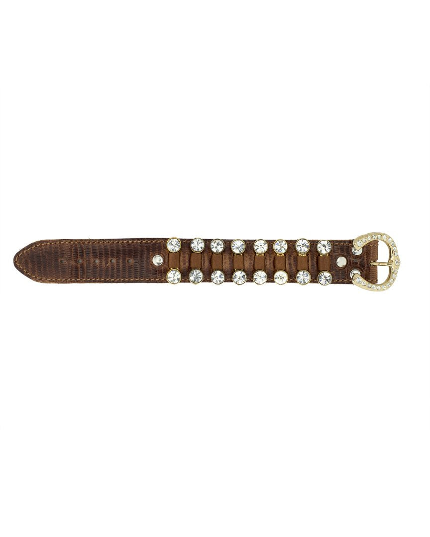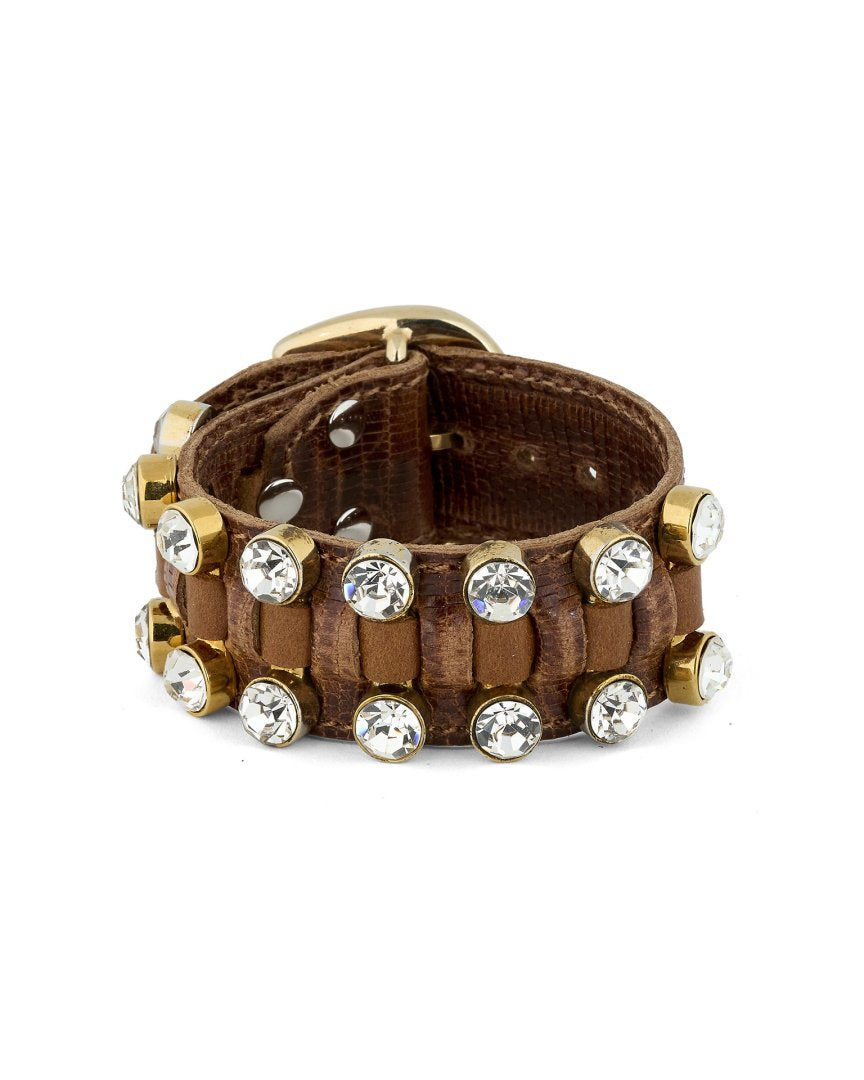 Bracciale In Cuoio Con Strass Lux Lizard-print Brown