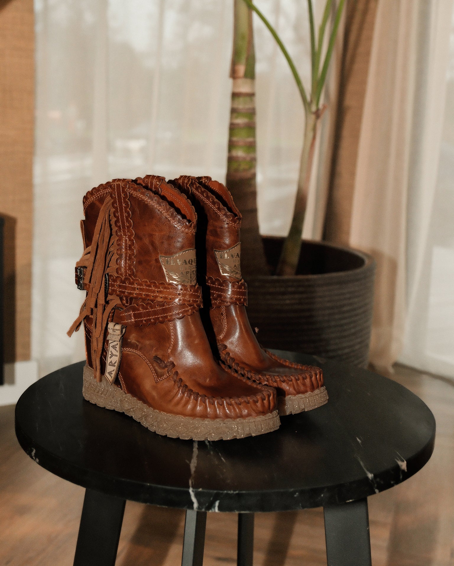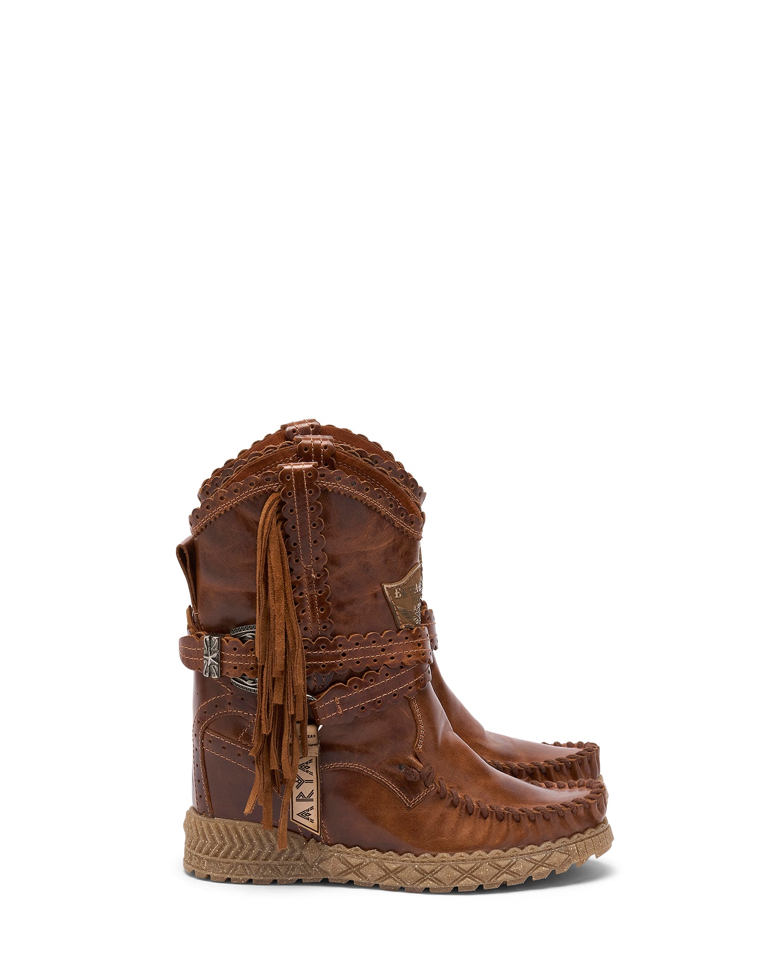 Icona e simbolo per eccellenza del marchio, Arya ha definito la storia più recente di El Vaquero diventando il personaggio principale del suo racconto di libertà e di spirito selvaggio. Realizzato con qualità impeccabile e la massima attenzione al dettaglio, Arya è caratterizzata dalle tipiche cuciture fatte a mano, frange laterali e dettagli metallici. Realizzati in una spettacolare pelle di vitello cangiante con dettagli tono su tono spazzolati a mano, progettata per essere indossata ogni giorno in qualsiasi condizione climatica.