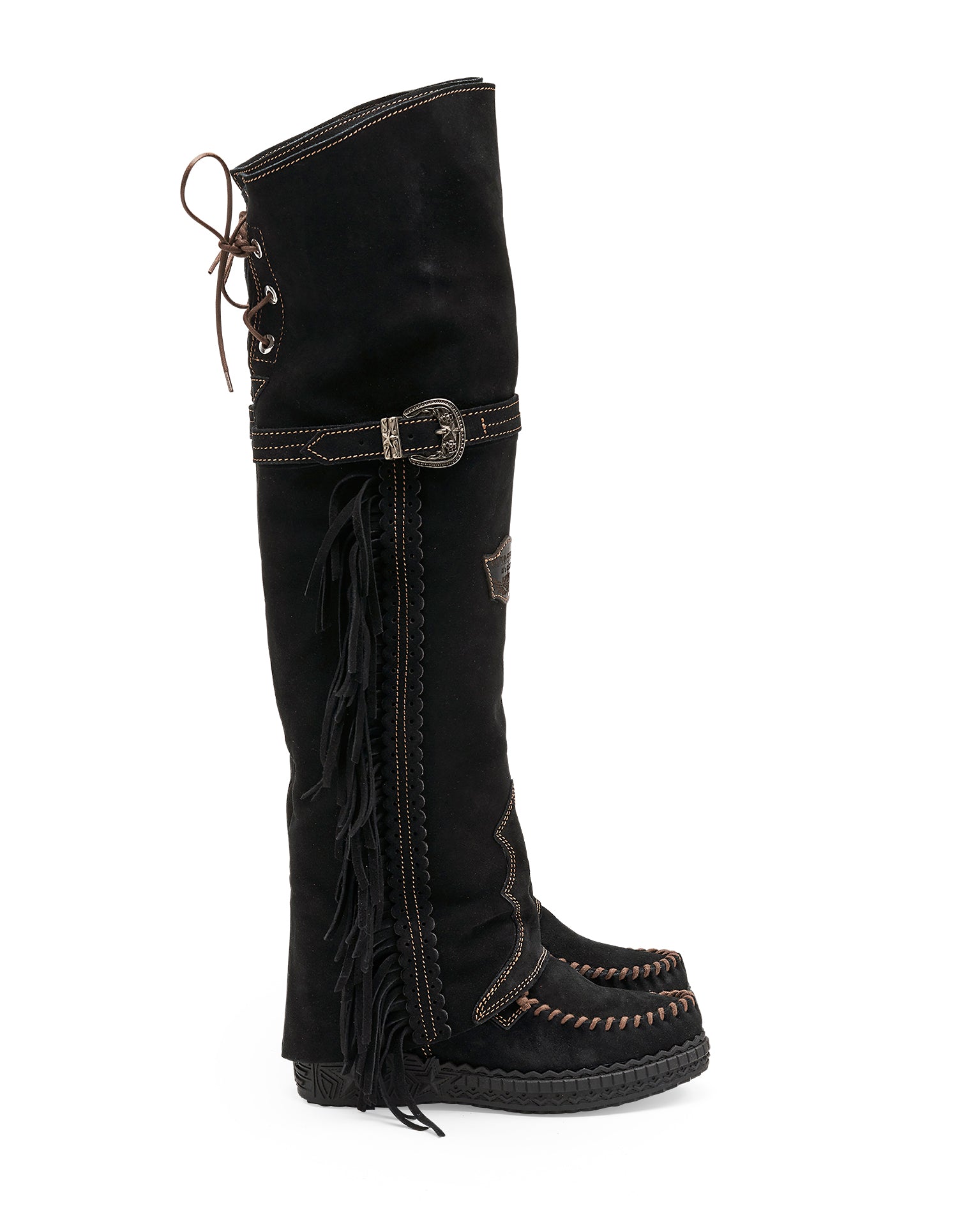 Lo stivale Coleen è un modello imprescindibile nel guardaroba di ogni affezionato al brand El Vaquero. Questo stivale con doppio gambale alto fin sopra il ginocchio è caratterizzato dalle tipiche cuciture artigianali sulla vaschetta, bellissime frange laterali e un elegante cinturino. Rifinito con il celebre lavaggio Silverstone, pietra miliare del marchio El Vaquero, che esalta ogni sfumatura della pelle nei suoi colori più intensi e rende ogni stivale diverso e unico nel suo genere.