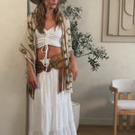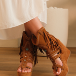 Amber is the perfect sandal for those who love to combine style and comfort. It combines the boho soul of an ankle boot with the open lines of a summer sandal, with a 10 cm wedge and 5 cm platform. The extra-comfort insole, adjustable lace, fringes and suede calfskin inserts make it ideal for any occasion. Finished with a leather lining for a luxurious feel with every step.