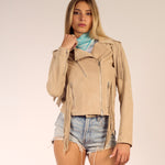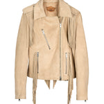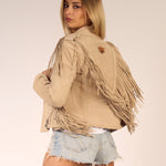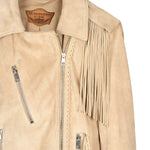 Jake is the premium suede sheepskin jacket, a symbol of El Vaquero's artisanal and rebellious style. Handcrafted in Tuscany, it features decorative fringes, metallic details and a refined construction that enhances every look. Each piece is treated with our Silverstone wash, which gives an exclusive vintage effect and unique shades of color. A one-of-a-kind artisanal leather jacket, perfect for those seeking authenticity, quality and character.