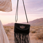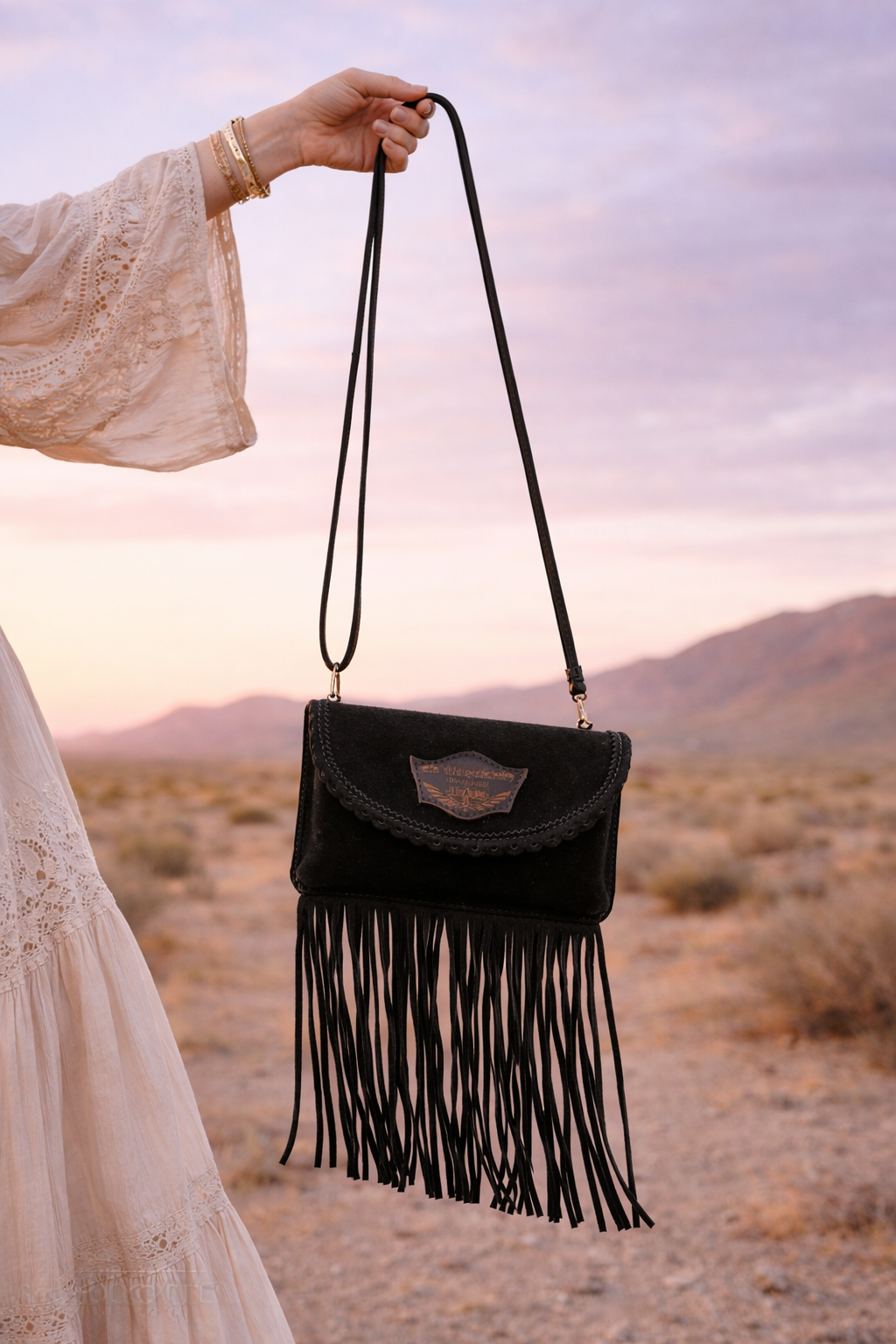 La borsa Lara di El Vaquero è un gioiello di pura artigianalità. Caratterizzata da lunghe frange che scendono morbide dalla parte inferiore, la borsa Lara può essere indossata sia come tracolla che come pochette, ed è l’accessorio perfetto da indossare in ogni occasione.