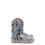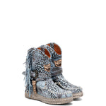 Known as the very emblem of the brand, the Arya boot has written a fundamental chapter in the history of El Vaquero, becoming the undisputed protagonist of its story of freedom and independence. Its distinctive features, such as hand-stitched seams, soft side fringes and metal details, make the Arya an essential icon within the El Vaquero collection. Available in this magnificent combination of leopard print cowhide.