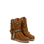 Our famous Arya moccasin, El Vaquero's flagship model, is presented in this more aggressive and gritty version: Arya Studded. With a 7 cm internal wedge, leather fringes and studs applied by hand by our craftsmen, it expresses all the strength of Italian craftsmanship. Available in mou and carbon colors, exclusively to celebrate 50 years of El Vaquero.