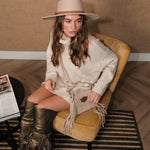 The new Boho hat by El Vaquero is made of 100% Made in Italy wool and embellished with a tone-on-tone leather belt. The wide and flat brim design stands out for its original and casual character, ideal for those who want a unique accessory that enhances every outfit. Perfect for expressing your boho chic personality, this hat is the detail that completes your look with naturalness and elegance.