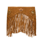 The Carla belt by El Vaquero combines boho style and western charm with long fringes, gold details and leather decorations. Finished with the iconic Silverstone wash, it enhances every nuance of the leather with intense and vibrant colors. Each piece is handmade and unique. Perfect for giving character and personality to any outfit.
