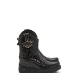 Ezra is one of our moccasin boots featuring a 7 cm internal wedge, a comfortable side zip and artisanal stitching on the vamp. In addition to the leather details and the shy external fringes, Ezra is embellished with elegant side studs. The new Distress combination comes in a premium vegetable calfskin subjected to a wax treatment that makes it soft and shiny. Scratches and brushing give the final touch to this incredible leather.