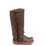 Rain is one of the most extraordinary and original non-wedge boots. It features a richly decorated shaft with fringes and side details, completed with a strap on the upper edge. However, what really makes the Rain boot extraordinary is its double shaft that creates a magnificent pant boot effect. Crafted in this wonderful premium goatskin with tonal details that perfectly embodies the essence and style of El Vaquero. Hand brushed and finished with a wax treatment, this material takes inspiration from classic American cowboy boots.