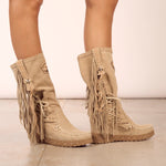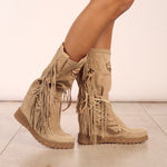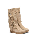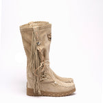 The Billie mid-calf boot features a 7cm internal wedge, soft fringes, beautiful leather side tabs and thick hand-stitched toe box stitching, a hallmark of the El Vaquero brand. Finished with the famous Silverstone wash, a cornerstone of the El Vaquero brand, which highlights every nuance of the leather in its most intense colours and makes each boot different and one of a kind.