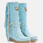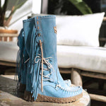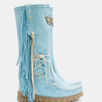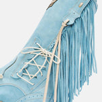 The Billie mid-calf boot features a 7cm internal wedge, soft fringes, beautiful leather side tabs and thick hand-stitched toe box stitching, a hallmark of the El Vaquero brand. Finished with the famous Silverstone wash, a cornerstone of the El Vaquero brand, which highlights every nuance of the leather in its most intense colours and makes each boot different and one of a kind.