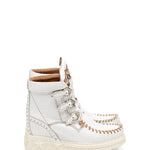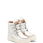 Joyce is the new moccasin boot by El Vaquero, characterized by thick hand-stitched seams on the vamp, 7 cm internal wedge and front buckles that facilitate the fit. Its sporty but at the same time elegant look makes it one of the El Vaquero boots most easily combinable with any type of occasion. Made of a soft premium cowhide in ivory white personally selected by the Head Designer of El Vaquero, the new Optical combination guarantees an elegant and classy monochromatic look.