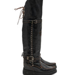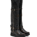 Ranger is one of El Vaquero’s signature over-the-knee moccasin boots. With no fringe and a clean design, the Ranger boot features two straps at different heights and a series of side studs that highlight the leather. Crafted from this gorgeous premium cowhide with tonal detailing, the new Wanted combination perfectly embodies the essence and style of El Vaquero.