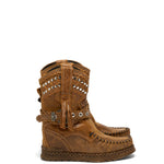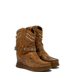 The Yara moccasin boot features a 7cm internal wedge, incredible leather details, soft fringes, metal elements and thick hand-stitched seams on the vamp, a hallmark of the El Vaquero brand. Crafted in this iridescent calfskin selected by our Head Designer Valerio Giuntoli.