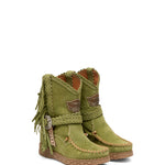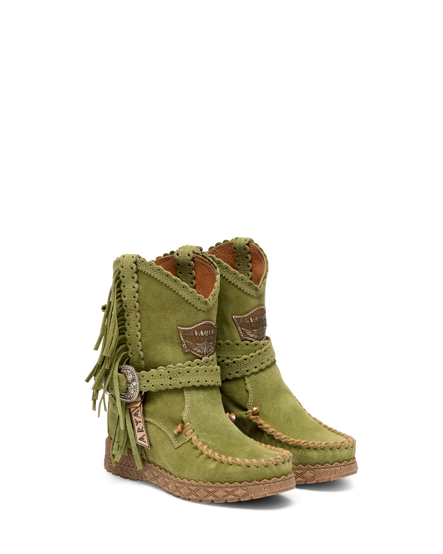 Icona e simbolo per eccellenza del marchio, Arya ha definito la storia più recente di El Vaquero diventando il personaggio principale del suo racconto di libertà e di spirito selvaggio. Realizzato con qualità impeccabile e la massima attenzione al dettaglio, Arya è caratterizzata dalle tipiche cuciture fatte a mano, frange laterali e dettagli metallici. Realizzati in questa pelle di vitello scamosciato con finitura vintage, esaltato dal celebre lavaggio Silverstone. Ogni pelle è unica, con sfumature intense e un effetto vissuto che racconta una storia.