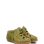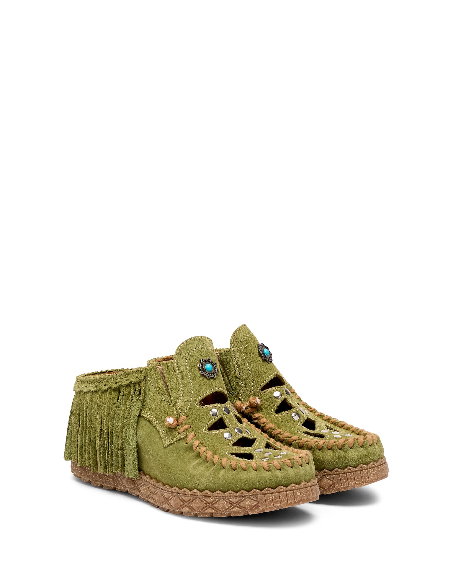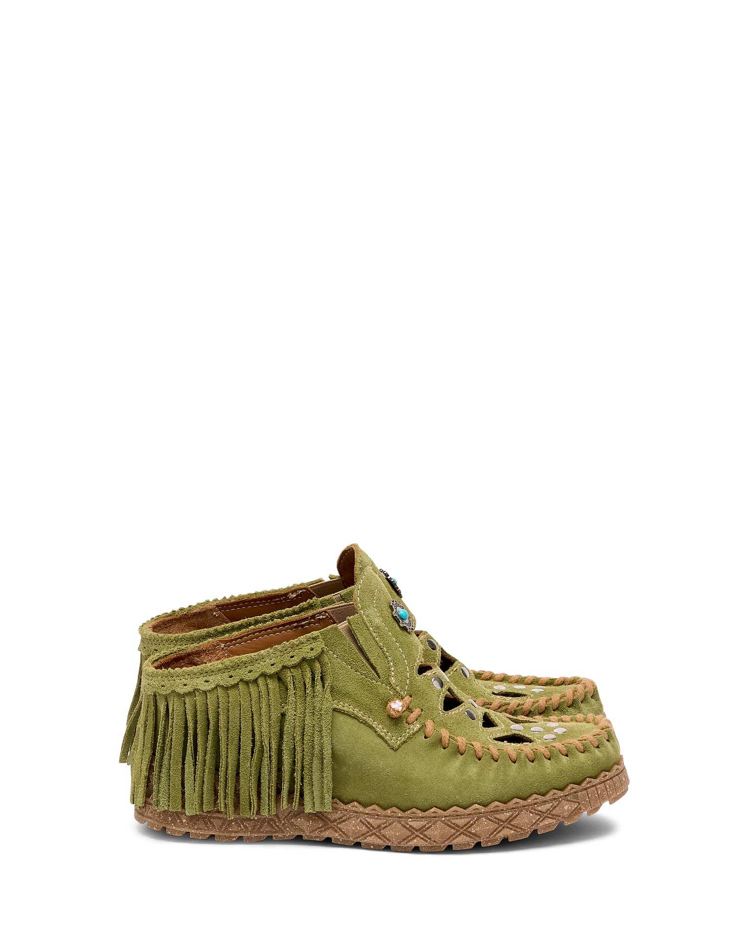 Bella è la nuova scarpa mocassino firmata El Vaquero, che unisce comfort quotidiano e autentico stile artigianale. Caratterizzata da intagli sulla tomaia, frange posteriori e cuciture fatte a mano, offre un plantare morbido e una suola in gomma per un look boho e ricercato. Realizzato in questa pelle di vitello scamosciato con finitura vintage, esaltato dal celebre lavaggio Silverstone. Ogni pelle è unica, con sfumature intense e un effetto vissuto che racconta una storia.