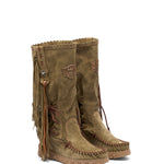 The Billie mid-calf boot features a 7cm internal wedge, soft fringes, beautiful leather side tabs and thick hand-stitched toe box stitching, a hallmark of the El Vaquero brand. Finished with the famous Silverstone wash, a cornerstone of the El Vaquero brand, which highlights every nuance of the leather in its most intense colours and makes each boot different and one of a kind.