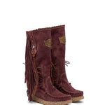 The Billie mid-calf boot features a 7cm internal wedge, soft fringes, beautiful leather side tabs and thick hand-stitched toe box stitching, a hallmark of the El Vaquero brand. Finished with the famous Silverstone wash, a cornerstone of the El Vaquero brand, which highlights every nuance of the leather in its most intense colours and makes each boot different and one of a kind.