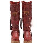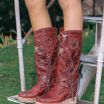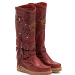 Mirea is one of the most incredible and original El Vaquero mid-calf boots. Featuring a 7 cm internal wedge, the typical artisan stitching and a comfortable ankle strap, Mirea has a shaft rich in leather details in the shape of stars, studs and soft fringes. Crafted in this beautiful premium cowhide with tonal details, the new Wanted combination perfectly embodies the essence and style of El Vaquero.