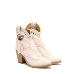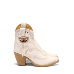 The Kera cowboy boot features a simple yet extremely captivating design. Featuring a 7 cm heel, elegant studs on the edge, and a convenient side zip, Kera is suitable for the most elegant occasions without sacrificing comfort. Crafted from soft, premium ivory-white cowhide leather, personally selected by El Vaquero's Head Designer, the new Optical colorway creates an elegant and classy monochrome look.