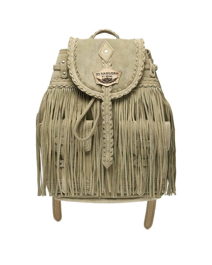 Zaino In Pelle Con Frange Mermaid Silverstone Olive