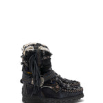 Il modello Arya Limited è realizzato in suede di alta qualità, e unisce denim e tessuti tribali in un design unico e senza tempo. Ogni paio è rifinito a mano e sottoposto a un lavaggio vintage che può lasciare leggere tracce e variazioni cromatiche sulla pelle: segni distintivi del processo artigianale, che rendono ogni creazione diversa dall’altra. La morbida fodera in pelliccia garantisce comfort e calore eccezionali.