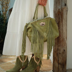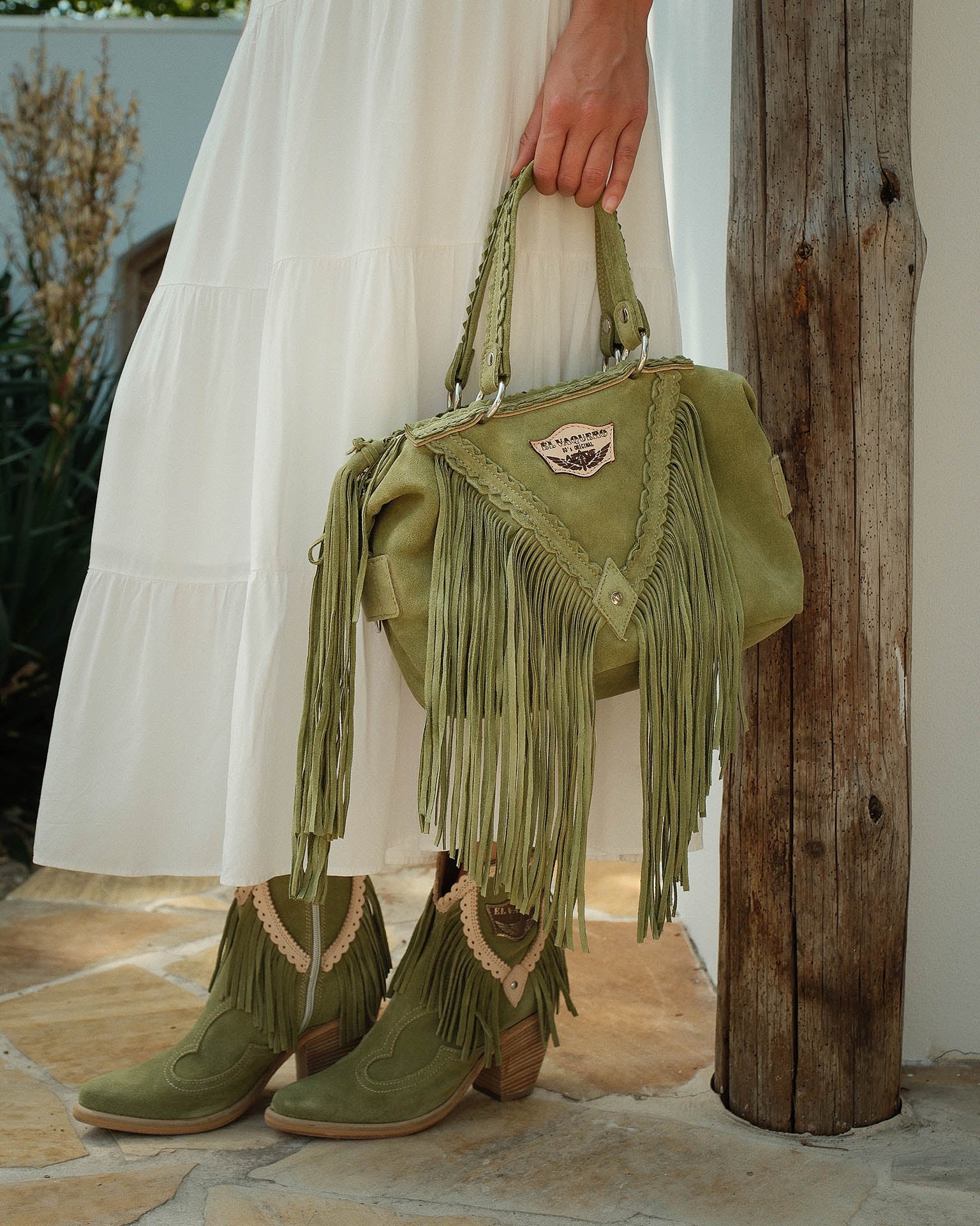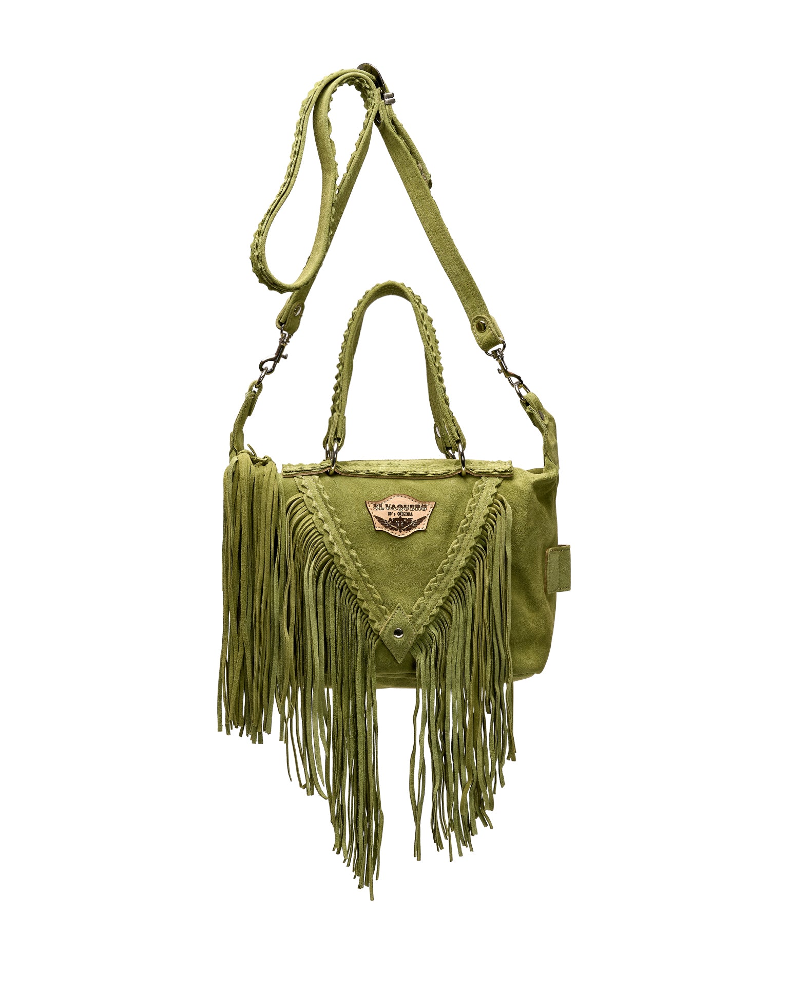 Borsa In Pelle Con Frange Byron Silverstone Wasabi