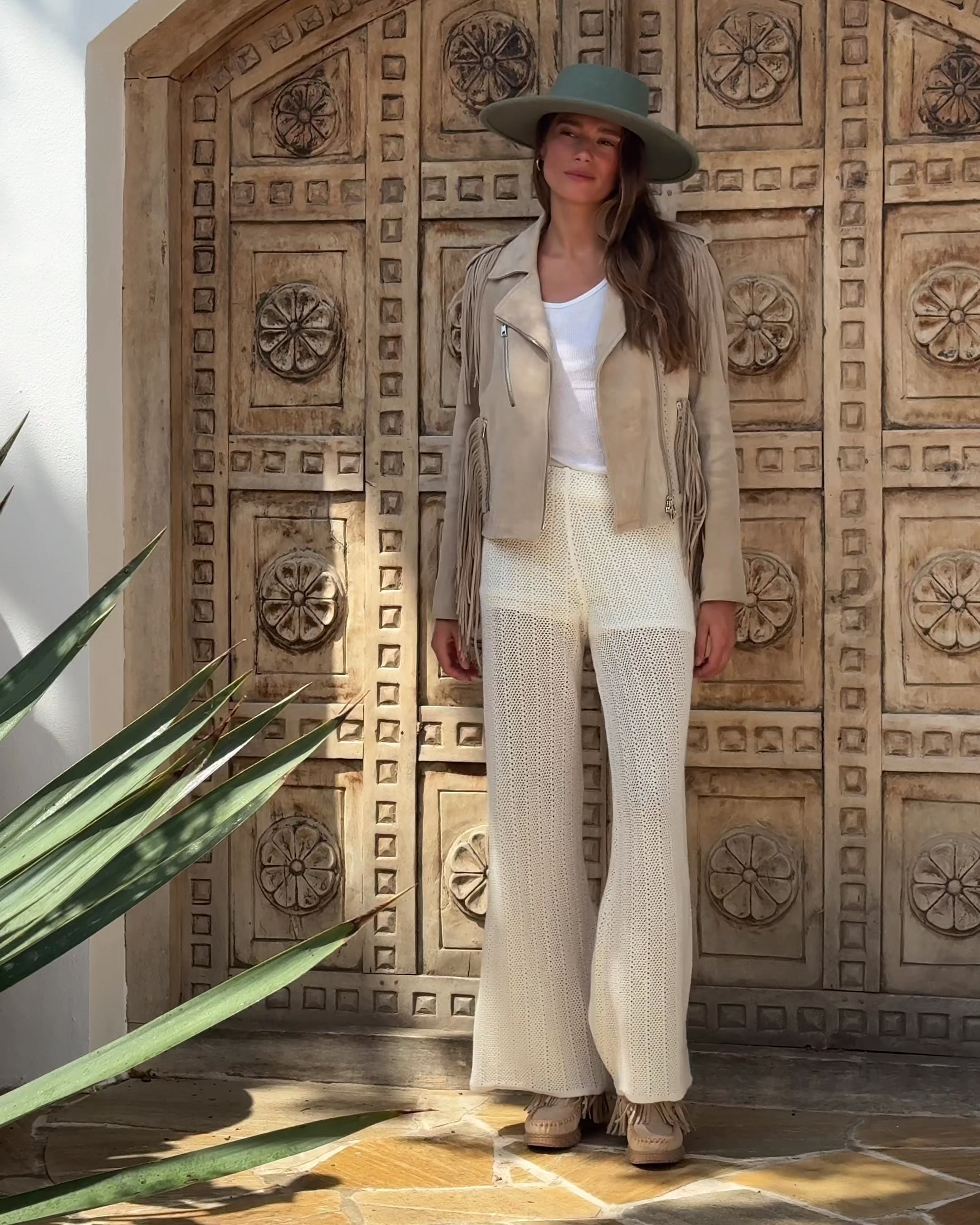 Lena features a 7 cm internal wedge, a soft toe cap, and a lace-up ankle strap with a decorative buckle. It's finished with handcrafted stitching and fringe around the entire perimeter of the shoe, for a boho look with a strong vintage feel. Crafted from this suede calfskin with a vintage finish, enhanced by the renowned Silverstone wash. Each hide is unique, with intense hues and a worn-in look that tells a story.