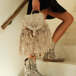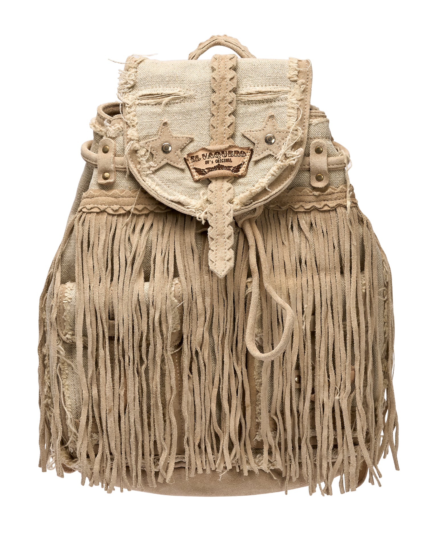 Zaino In Pelle Con Frange Mermaid Washed Linen